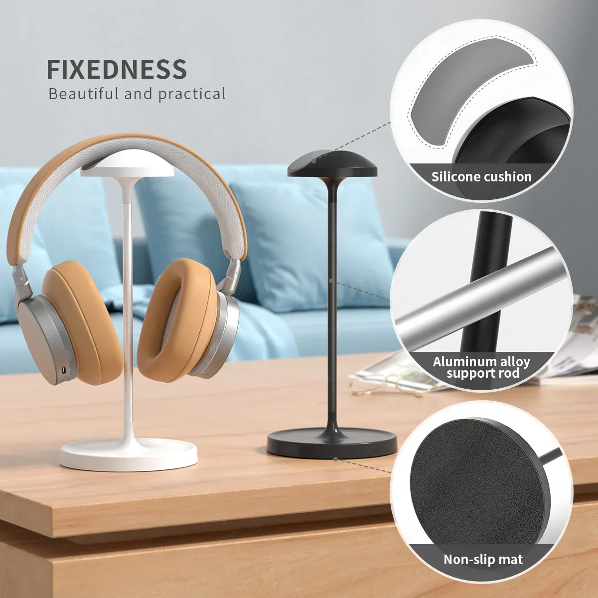 Stojak na słuchawki, uniwersalny, aluminiowy, z plastikową podstawą, czarny/biały