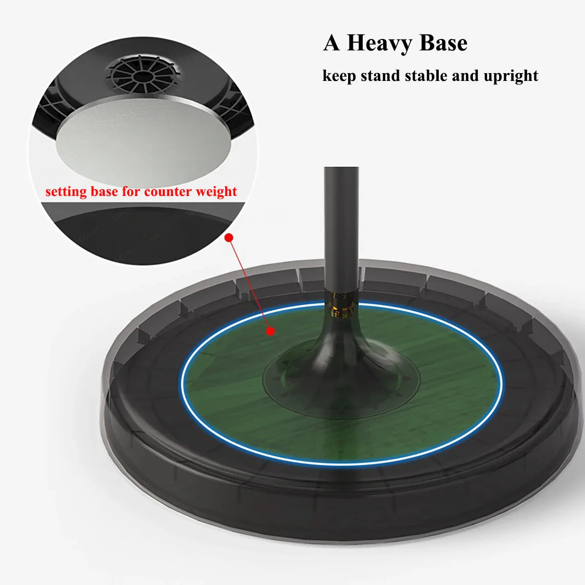 The total weight of the stand is 185g, a 70g clump weight in the bottom to keep the stand stable.