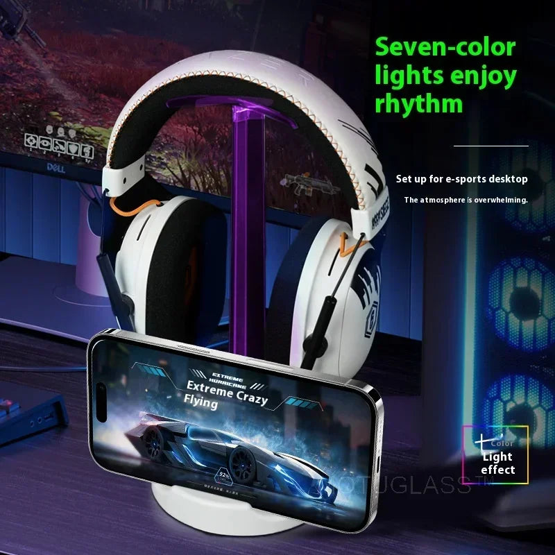 Stojak na słuchawki LED, wielofunkcyjny, z odłączaną podstawą, kolorowe podświetlenie, do biura i gier