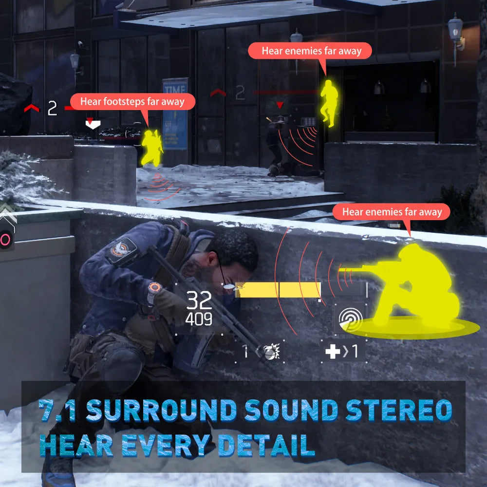 E1000’s flexible flip-up microphone with omnidirectional noise reduction tech, reduces distracting background noise,collects your voice clearly. And noise-canceling microphone ensures clear & high-quality gaming voice talks or online chat.